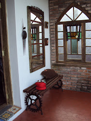 Janela antiga com espelhos e vidros coloridos. Dimensões: 158 cm x 45 cm